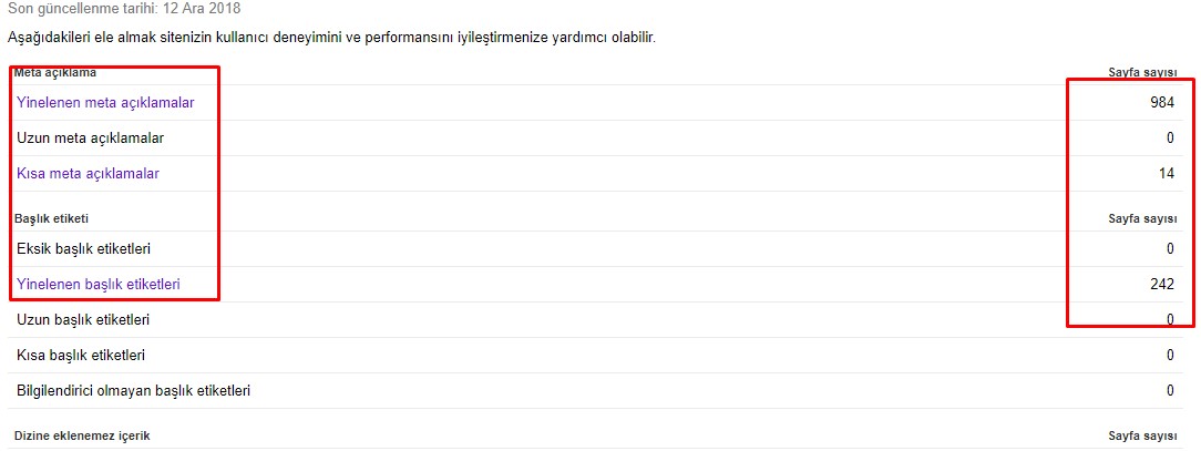 - Yenilenen İçerik Sorunları: Yenilenen içerik aynı veya benzer birden sayfanın olduğu anlamına gelir. Yenilenen içerik sorunu birkaç teknik sorundan da kaynaklana bilir. Google sıralamasını ciddi şekilde etkileyen bu sorunların tespit edilip hızla giderilmesi gerekir.