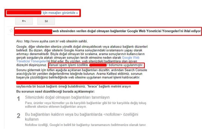 - Cezaya neden olan sebebi belirlemek ( Doğal olmayan linker, spam içerik, içerikte uygunsuz linkler vb).