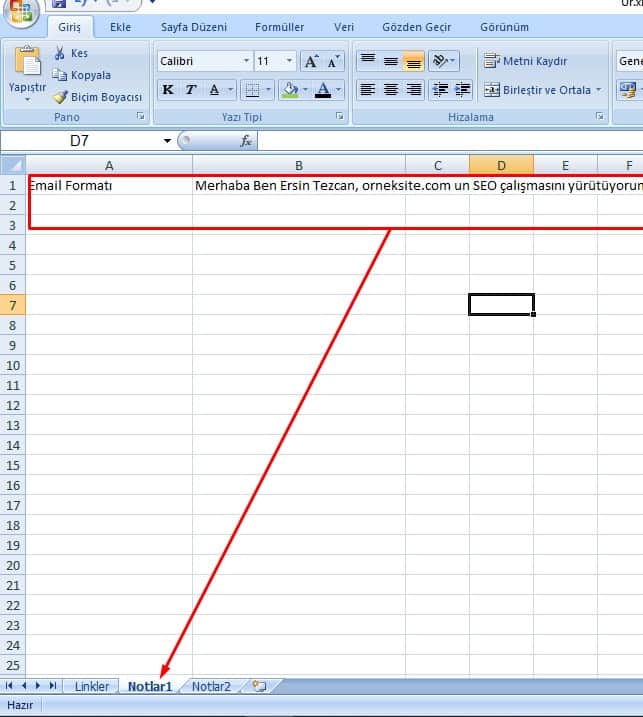 Bütün notlarınızı, site sahiplerine göndereceğiniz e-mail tarihlerini ve benzeri tüm işlemleri bu dosyaya kaydedelim. Bütün çalışmalarınızı bu Ecel dosyasında toplayın;