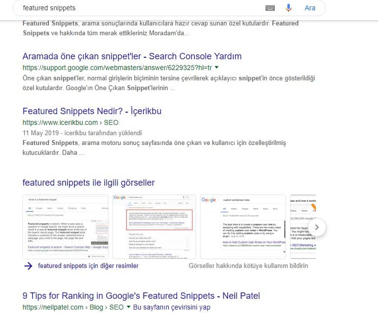 Örneğin , featured snippets son yıllarda yükselişte.